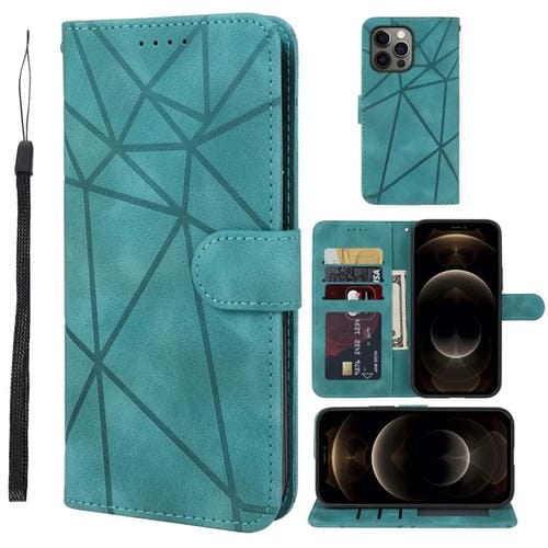 Pour iPhone 12 Pro Max Skin Feel Lignes géométriques Étui de téléphone en cuir (Vert)