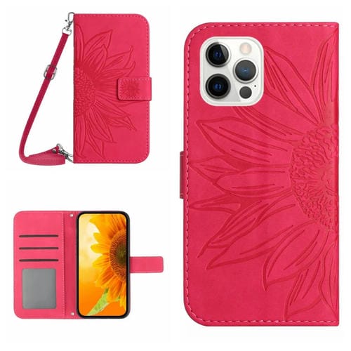 Funda Flip de Cuero para iPhone 12 Pro Max Skin Feel Sun Flower Pattern con Cordón (Rose Red)