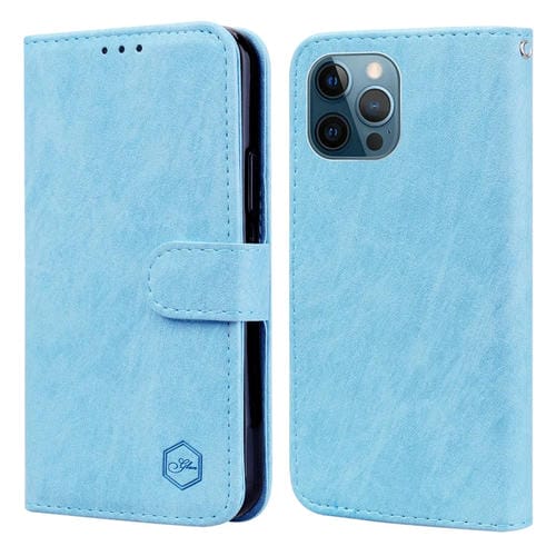 Funda para Teléfono iPhone 12 Pro Max Skin Feeling Oil Textura de Cuero PU + TPU (Azul Claro)