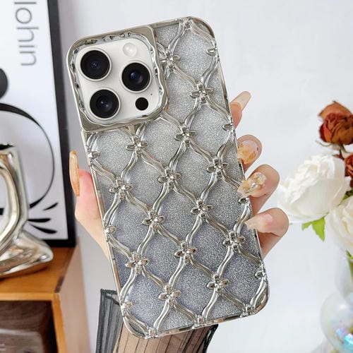 For iPhone 12 Pro Max Star Flower Gradient Glitter Paper Electroplated TPU Phone Case (Silver)