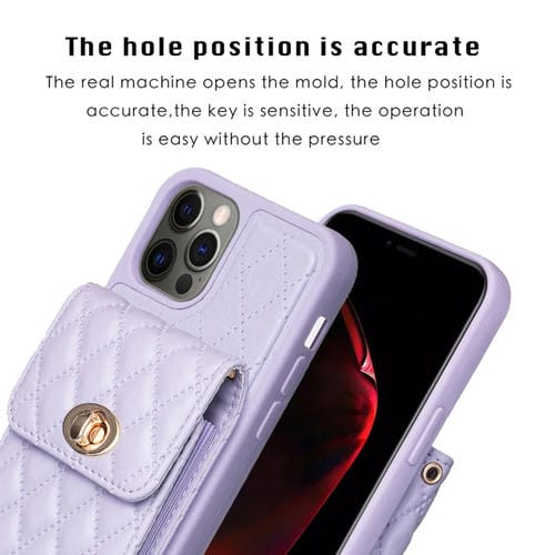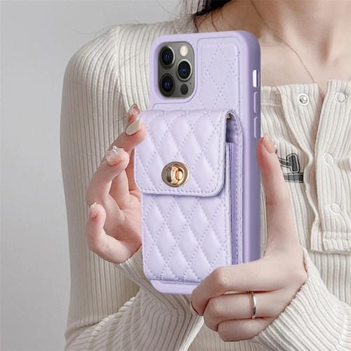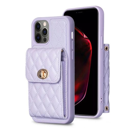 Funda de Cuero para iPhone 12 Pro Max Cartera Rombico con Hebilla de Metal Vertical (Púrpura)