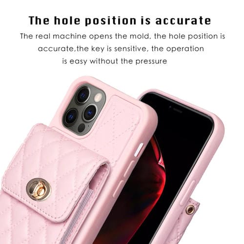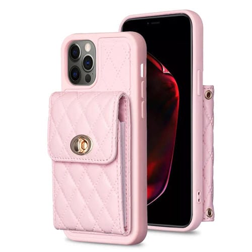 Funda Cartera para iPhone 12 Pro Max Rombico Vertical Hebilla de Metal Cuero (Rosa)