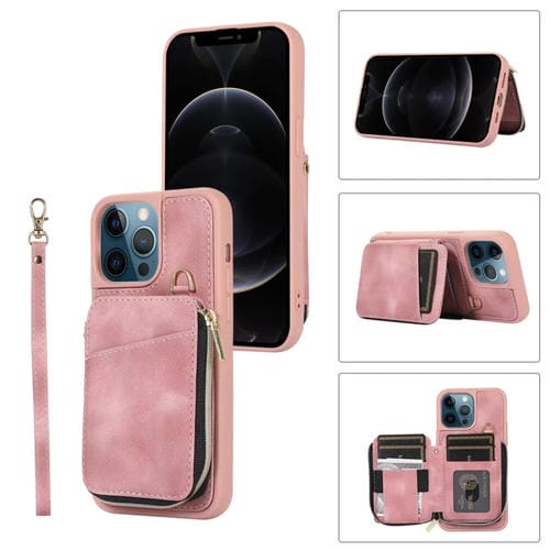Funda para Teléfono iPhone 12 Pro Max Zipper Card Bag Contraportada (Rosa)