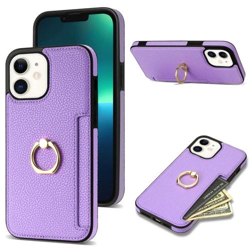 Funda Trasera para iPhone 12 Ring Card Litchi de cuero (Púrpura)