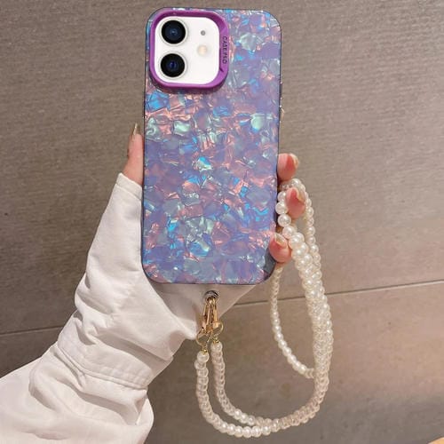 Funda para iPhone 12 Shell Texture Crossbody con Cadena de Perlas TPU Acrílico Híbrido (Púrpura)