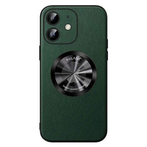 Funda para iPhone 12 Sulada Microfiber Leather Magsafe Magnetic Phone Case (Verde)