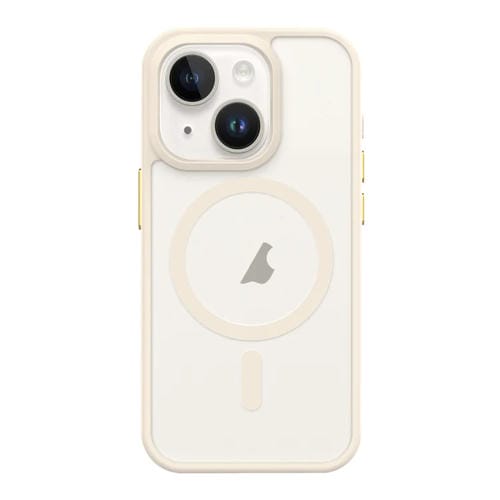 Estuche para teléfono iPhone 13 Botón de Metal Sensación de Piel Magsafe Mate a Prueba de Golpes (Blanco)