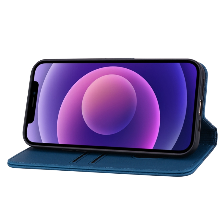 Funda de Cuero para iPhone 13 Business con Hebilla de Diamante y Cordón (Azul Real)