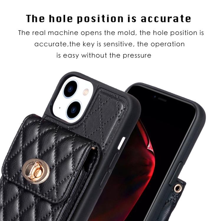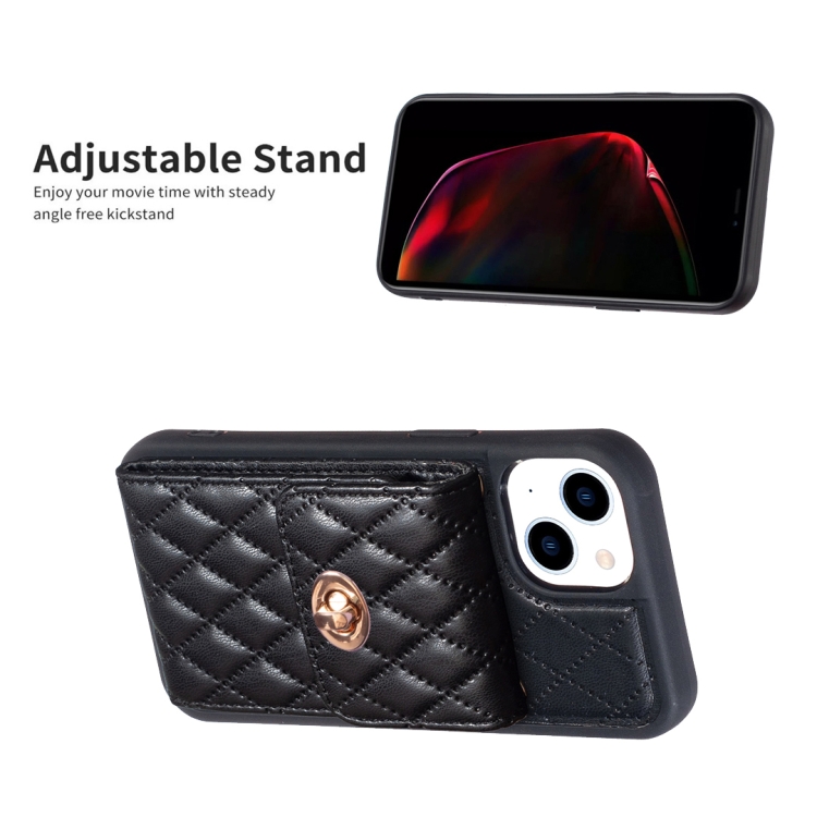 Caja de Teléfono de Cuero Rómbica para iPhone 13 Billetera con Hebilla de Metal Vertical (Negro)