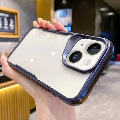Caja de teléfono híbrida para iPhone 13 con marco de TPU galvanizado (Azul)