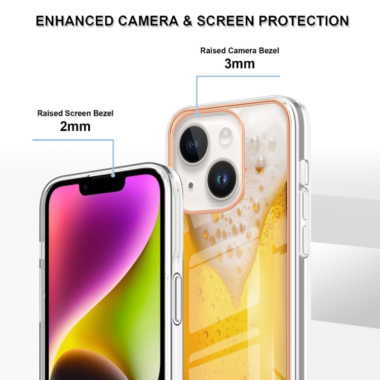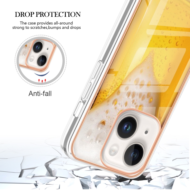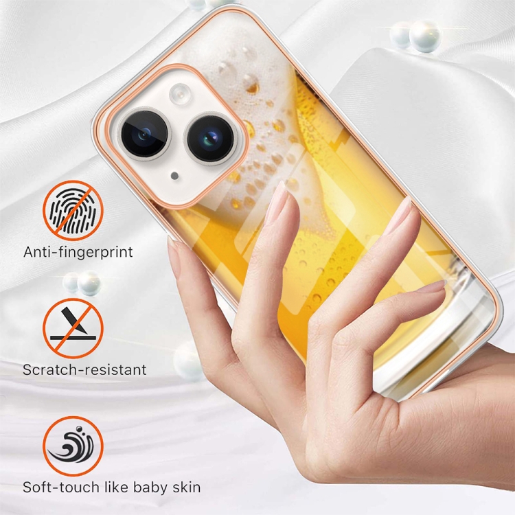 For iPhone 13 Electroplated Marble Double-sided IMD Phone Case (Draft Beer)