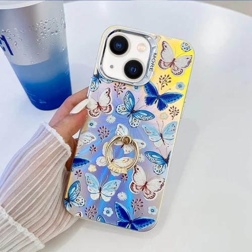 Pour iPhone 13 Galvanoplastie Laser Papillon Anneau Support Téléphone Cas (AB4)