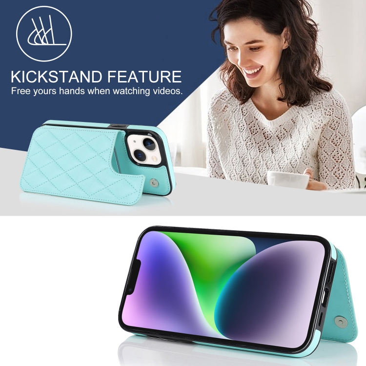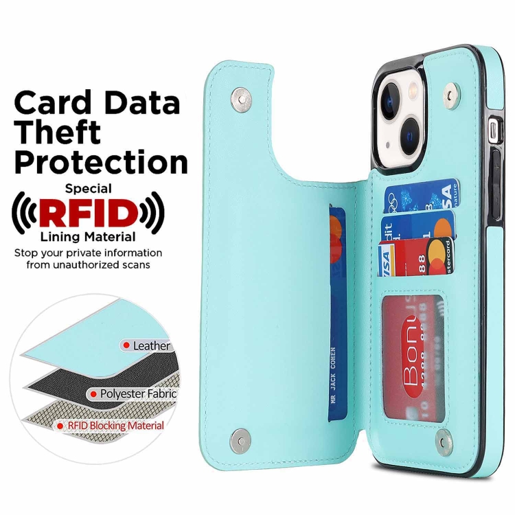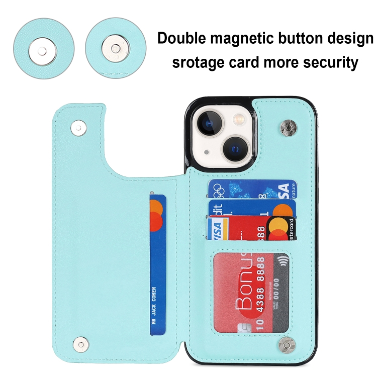Funda de Teléfono para iPhone 13 Rombica Doble Hebilla PU Cuero (Azul)