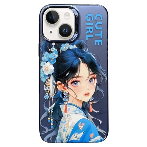 Funda para iPhone 13 Anillo de Lente Electrochapado PC Hybrid TPU Estilo Antiguo Chino (Púrpura)