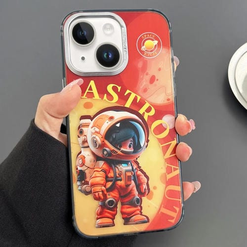 Pour iPhone 13 Étui de téléphone d'astronaute coloré gravé (petit orange)