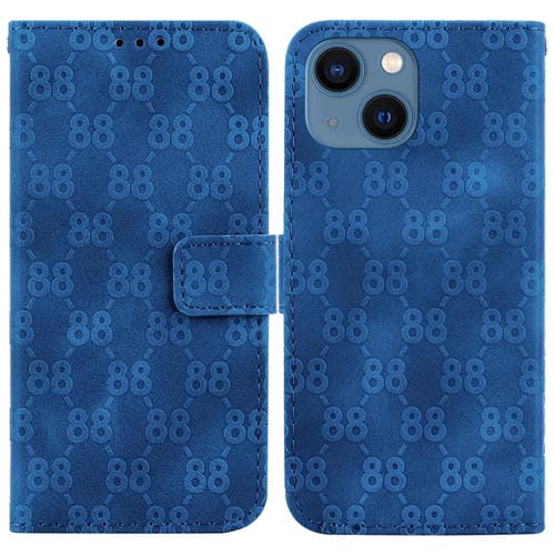For iPhone 13 Double 8 Shape Embossed Leather Phone Case (Blue)