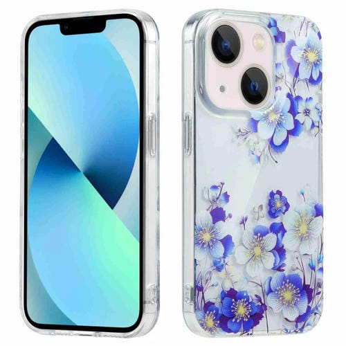 Estuche para Teléfono Symphony Galvanizado para iPhone 13 (Flor Blanca y Azul)