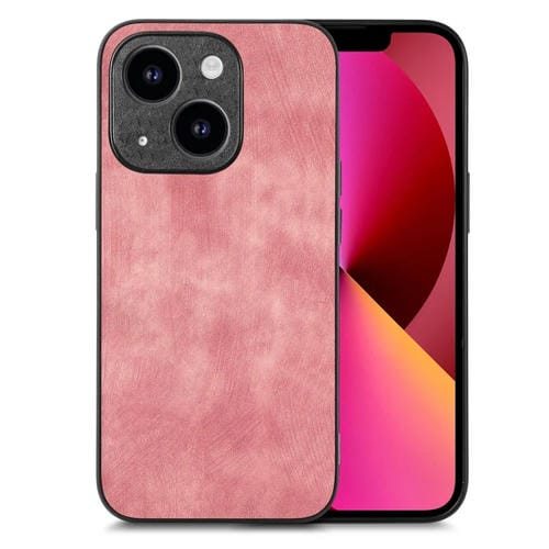 Funda de Teléfono para iPhone 13 con Contraportada de PC de Cuero Vintage (Rosa)