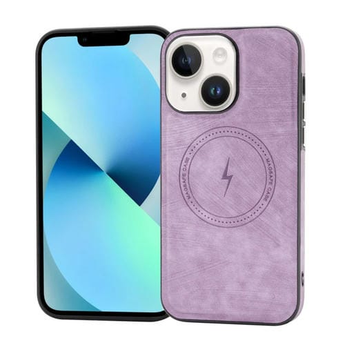 Funda de teléfono iPhone 13 Magsafe Cuero Lateral (Púrpura Claro)