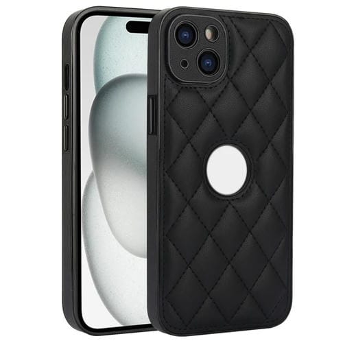 Funda para Teléfono iPhone 13 Contraportada de Cuero Rómbico (Negro)