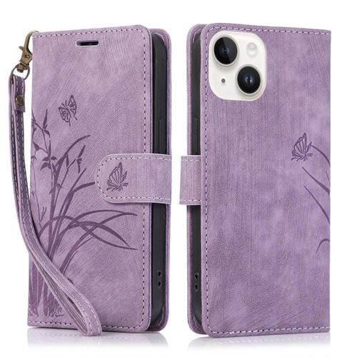 For iPhone 13 Orchid Butterfly Embossed Leather Phone Case (Purple)