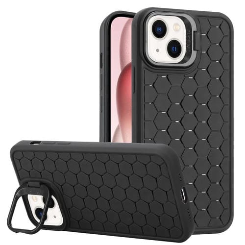 Funda para Teléfono TPU para iPhone 13 con Soporte para Lente Radiante de Panal (Negro)