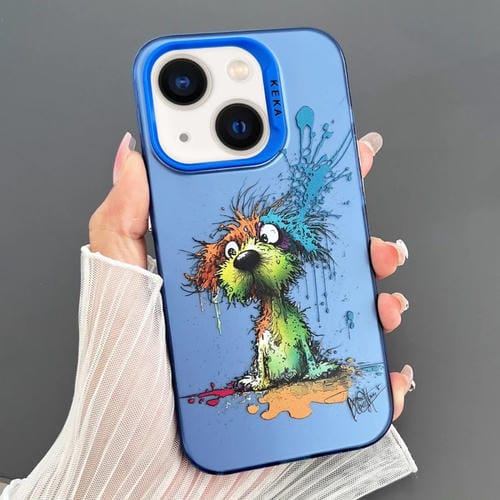 Funda para Teléfono iPhone 13 Imd Animal Graffiti TPU + PC Doble Cara (Perro Caído)