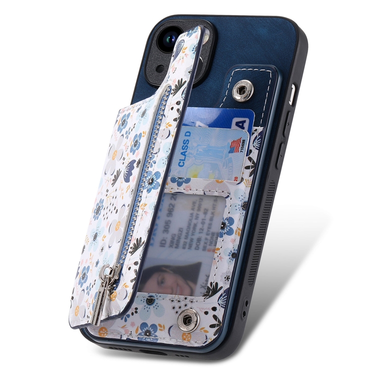 Funda Trasera para iPhone 13 con Billetera con Cremallera Pintada Retro (Azul)