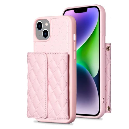 Funda Horizontal Wallet de Cuero Rhombic para iPhone 13 (Rosa)
