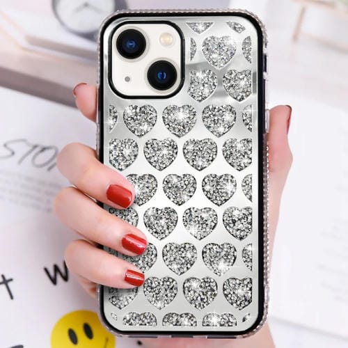 Pour iPhone 13 Love Hearts Diamond Mirror TPU Phone Case (Argent)