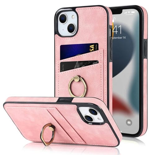 Pour iPhone 13 Mini Étui en cuir Vintage Patch avec support de bague (rose)