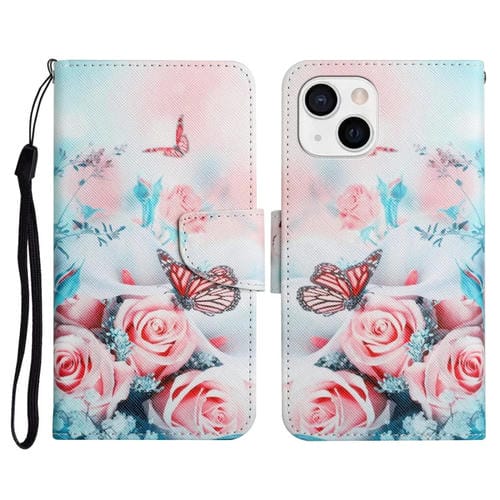 Funda de Cuero para iPhone 13 Mini con Tapa Horizontal, Soporte, Ranura para Tarjeta y Billetera (Mariposa de Peonía)