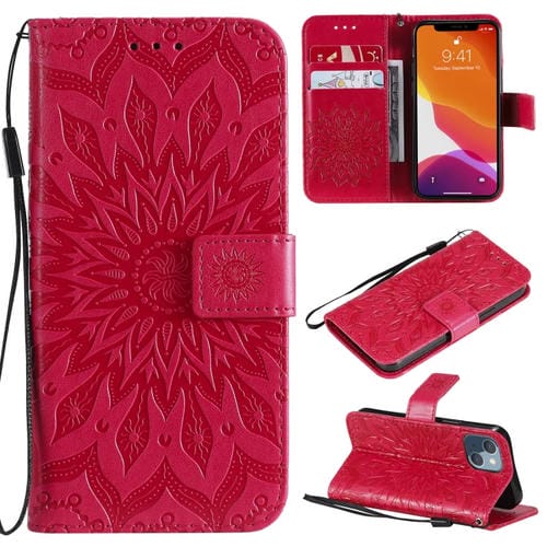 Funda para iPhone 13 Mini Cuero PU Flip Horizontal Patrón Girasol Ranuras Tarjetas Billetera Cordón (Rojo)