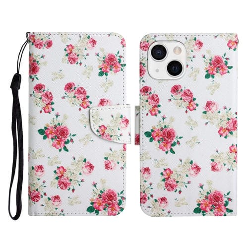 Funda de Cuero para iPhone 13 Mini con Tapa Horizontal, Soporte, Ranura para Tarjeta y Billetera (Flor de Peonía Roja)