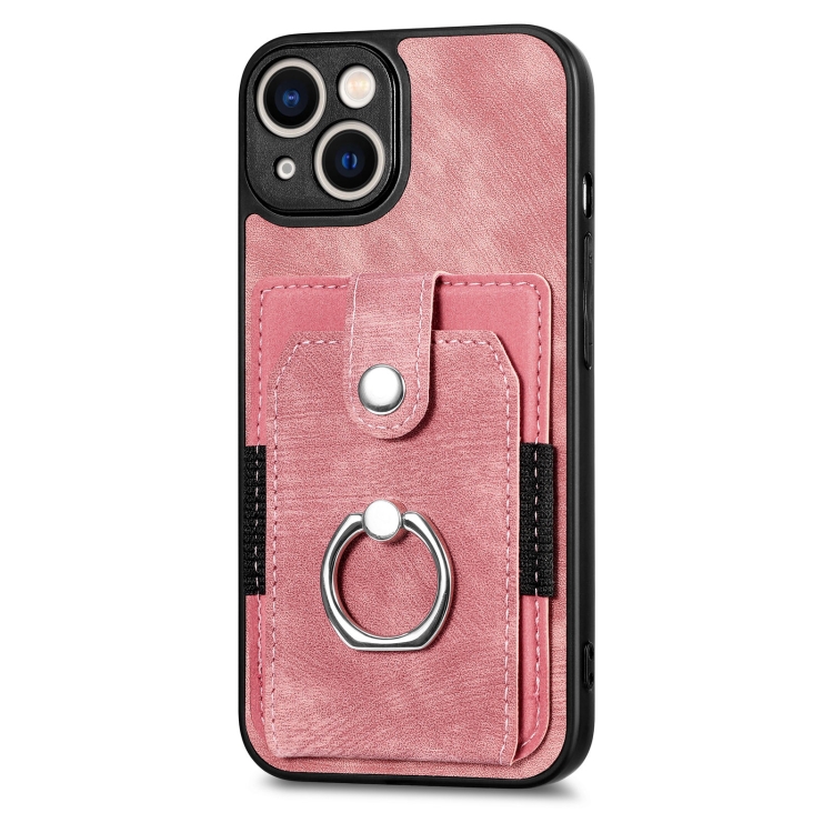 Funda para iPhone 13 Mini Retro Skin-Feel Ring Card Wallet (Rosa)