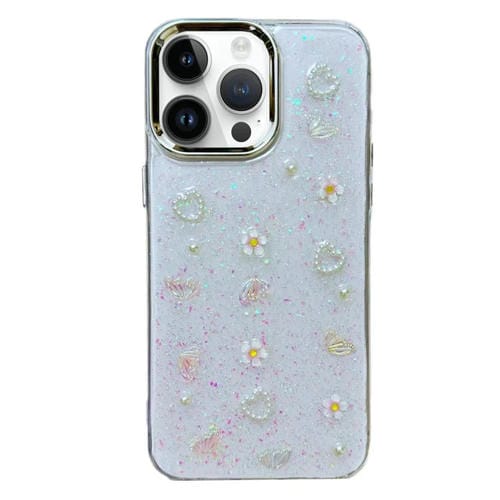 Funda para teléfono iPhone 13 Pro TPU 3D Bow Pearl Love Flower (Flores de Amor de Mariposa)