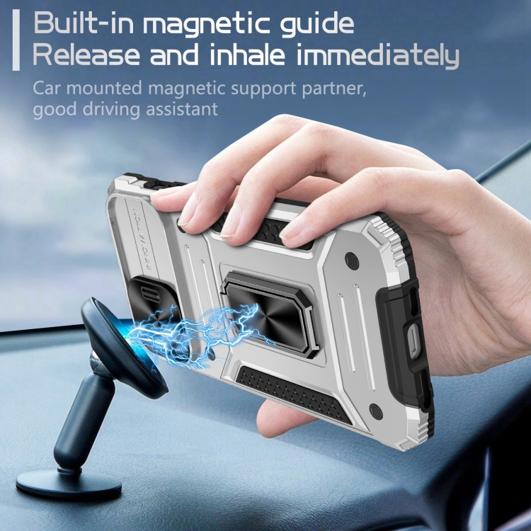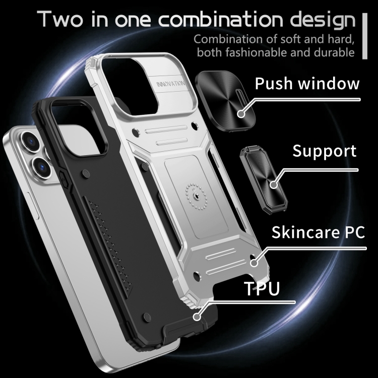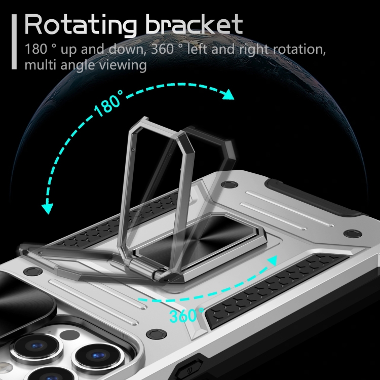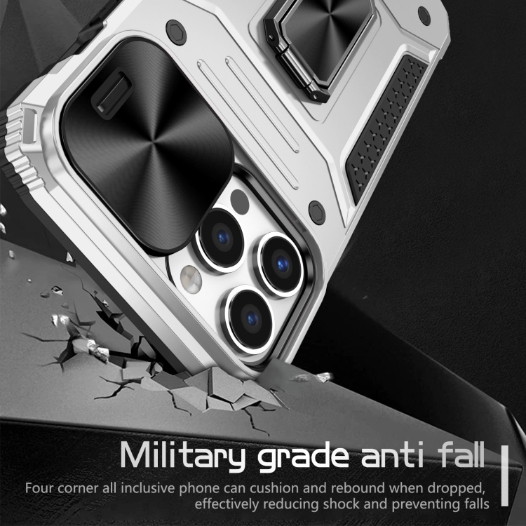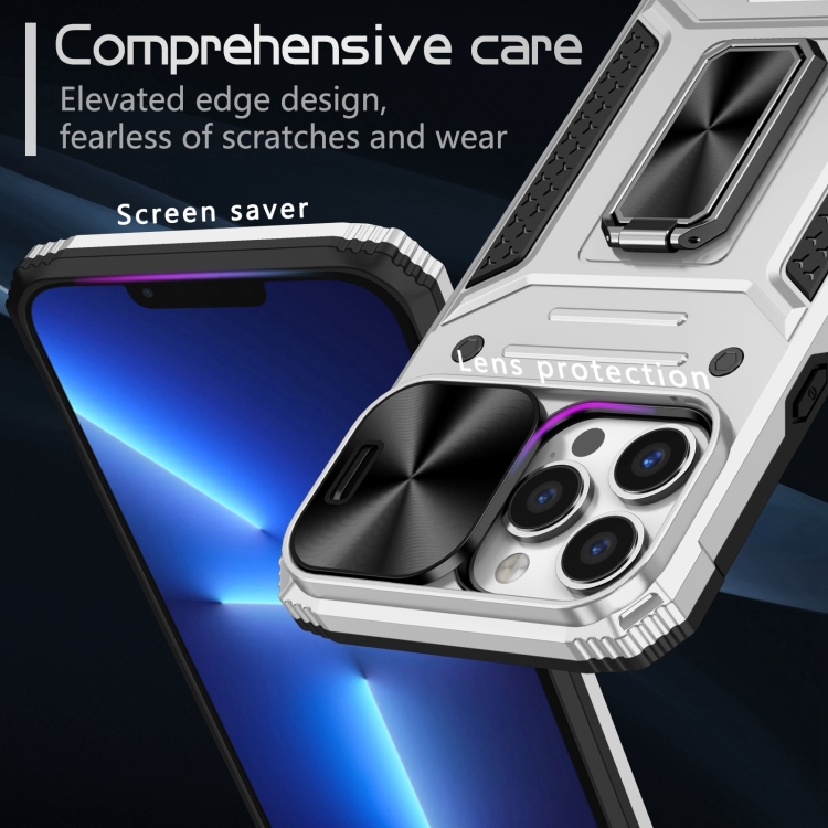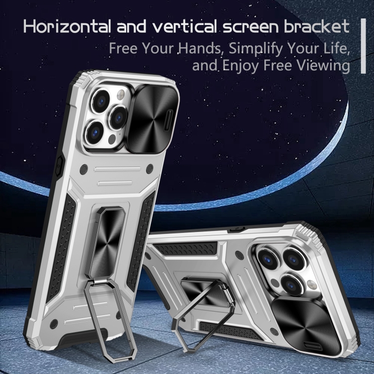 Pour iPhone 13 Pro Camshield Robot TPU Hybrid PC Phone Case (argent)