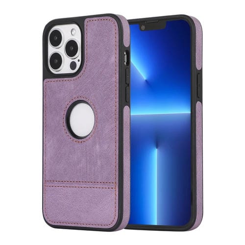 For iPhone 13 Pro Splicing Stitching PU Phone Case with Hollow Cutout (Purple)