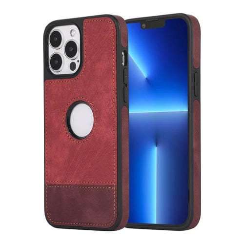 For iPhone 13 Pro Splicing Stitching PU Phone Case with Hollow Cutout(Red)