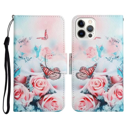 Estuche para iPhone 13 Pro Cuero con Tapa Horizontal Patrón Pintado Soporte Ranura Tarjeta Billetera (Mariposa de Peonía)