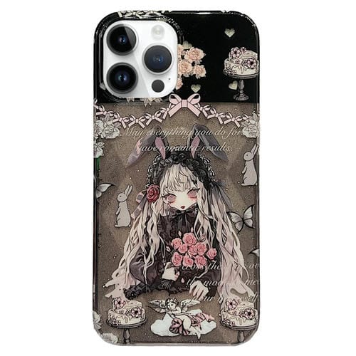 Pour iPhone 13 Pro Coque de téléphone en TPU à couverture complète IMD double face (oreilles de lapin, fille pastel rose)