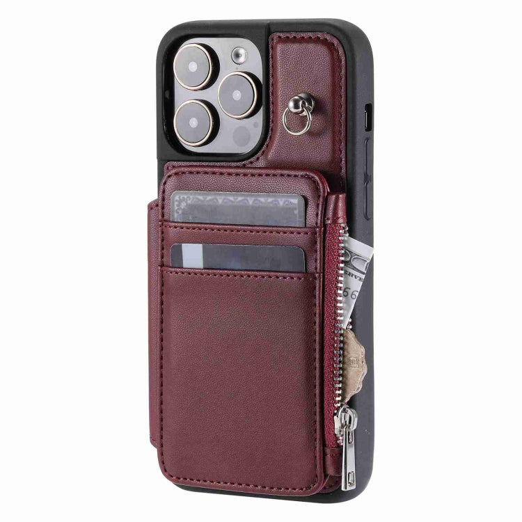 For iPhone 13 Pro RFID Phone Case with Zipper Card Slots (Wine Red)