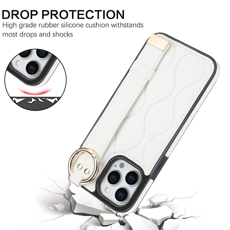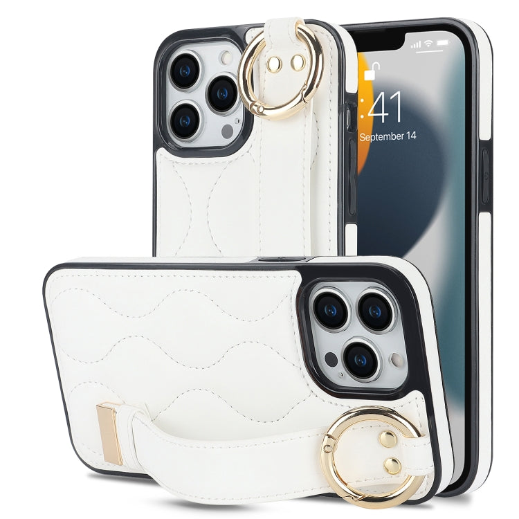 Pour iPhone 13 Pro Étui de téléphone en PU avec anneau de couverture complète antidérapant avec bracelet (blanc)