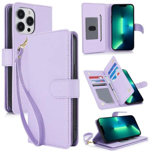 Funda para Teléfono iPhone 13 Pro Cuero con Billetera MultiTarjeta Rfid (Púrpura Claro)