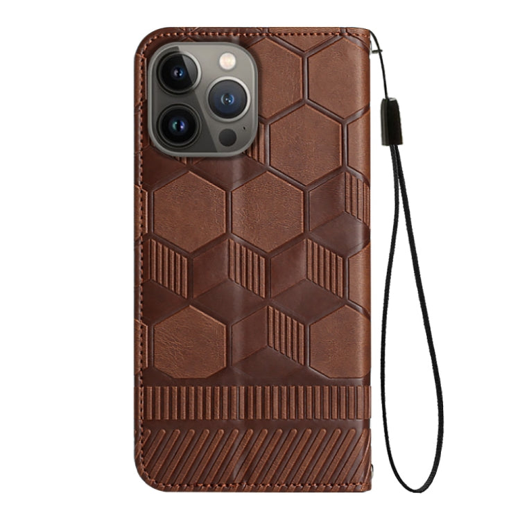 Funda de Teléfono para iPhone 13 Pro Cuero Magnético Tapa Textura de Fútbol (Marrón)