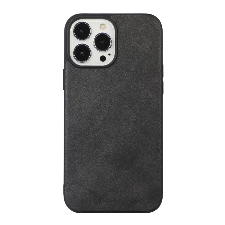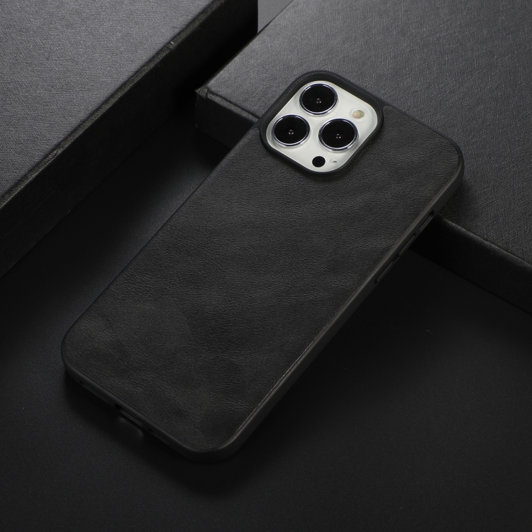 Funda de teléfono para iPhone 13 Pro PU con textura de piel de vaca (Negro)