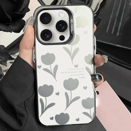 For iPhone 13 Pro Hybrid PC Silver Paint TPU Phone Case (Black Hollow Tulips)