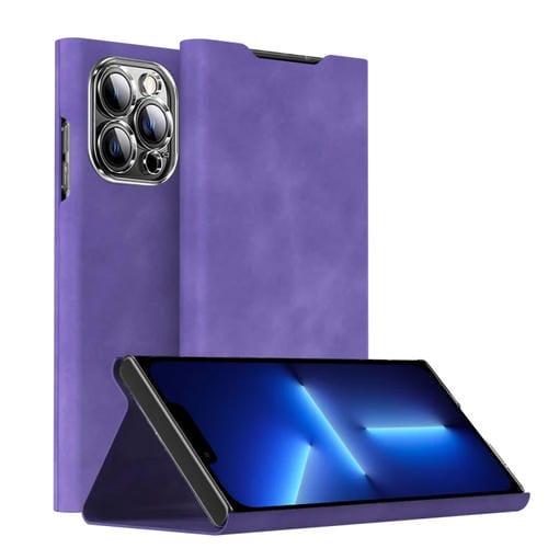 Funda Magnética de Cuero para iPhone 13 Pro con Textura de Napa y Soporte (Púrpura)