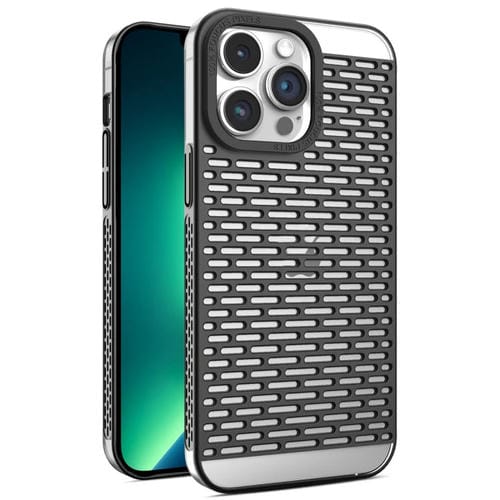 For iPhone 13 Pro Case Hollow Matte Electroplated PC Heat Dissipation Phone Case (Black)