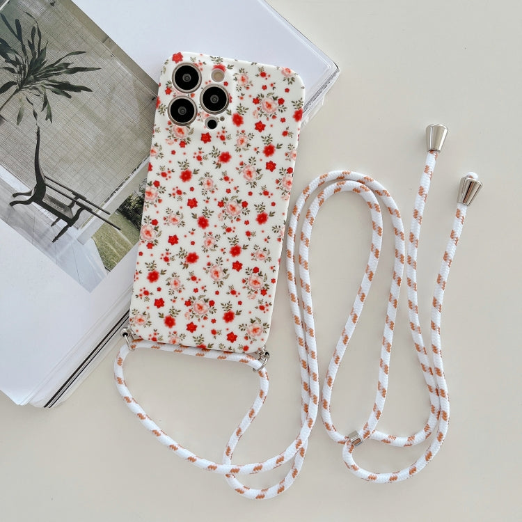Funda TPU para iPhone 13 Pro Lanyard Small Floral Protección (Blanco)